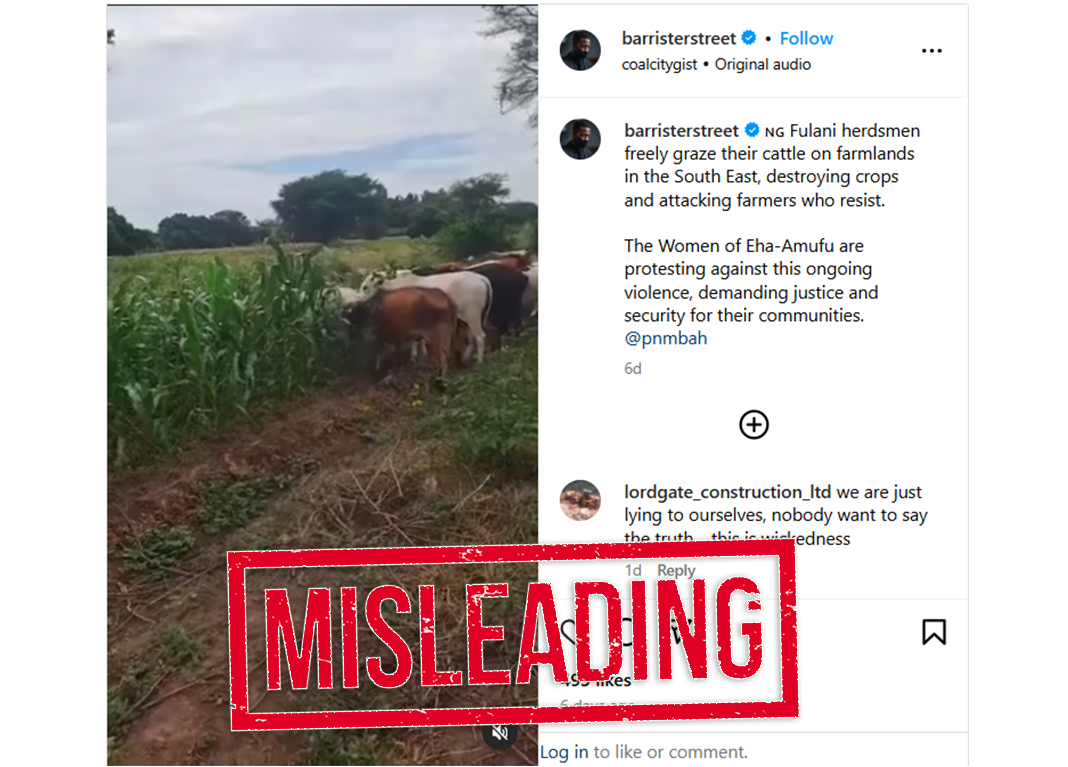 Is This Video Linked to a Protest by Eha-Amufu Women Over Fulani Herdsmen Attack? Umoh Umoh There is a video of cows destroying a cornfield on Instagram claiming... Read more.