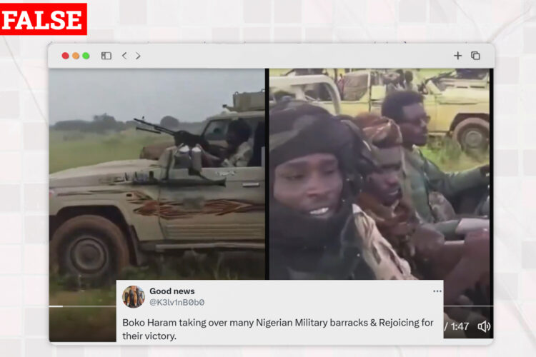Is This Video About Boko Haram Celebrating Victory Over Nigerian Soldiers? On October 12, 2025, an X user posted a video of men in military camouflage driving through the bush in jubilation, with the claim that they were Boko Haram members who were celebrating their victory over the Nigerian forces. The 1 minute and 47 […]