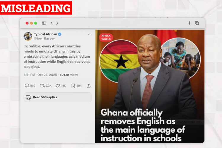 Has Ghana Officially Removed English Language in Schools’ Curriculum? On October 26, 2025, an X user @Joe_Bassey claimed that the Ghanaian government has abolished the use of English in all schools and replaced it with indigenous languages. The post had a graphic post from “AFRIKA WORLD,” showing an image of Ghanaian President, John Mahama, a […]