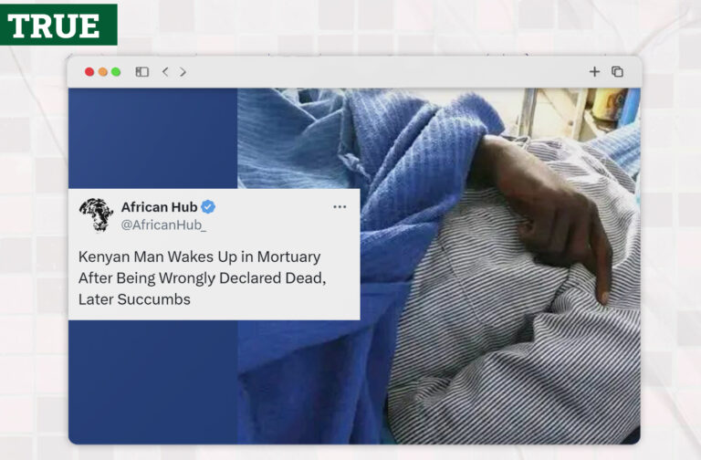 CLAIM: Kenyan Man Wakes Up At Mortuary After Being Declared Dead A verified X blog @AfricanHub_ posted a claim that a Kenyan man woke up in the mortuary after being wrongly declared dead. The post which surfaced online on September 10, 2025, is captioned, “Kenyan Man Wakes Up in Mortuary